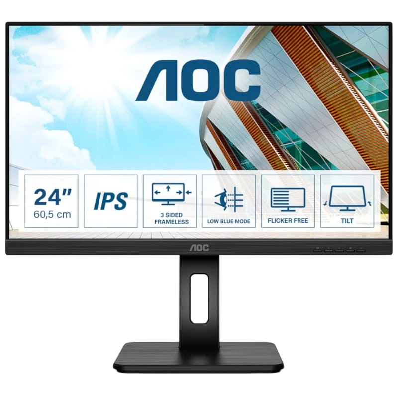 El AOC 24P2Q cuenta con una pantalla de 24" Pulgadas dispone de un panel plano IPS con una resolución Full HD y es compatible con diferentes conexiones para incorporar más dispositivos o monitores.