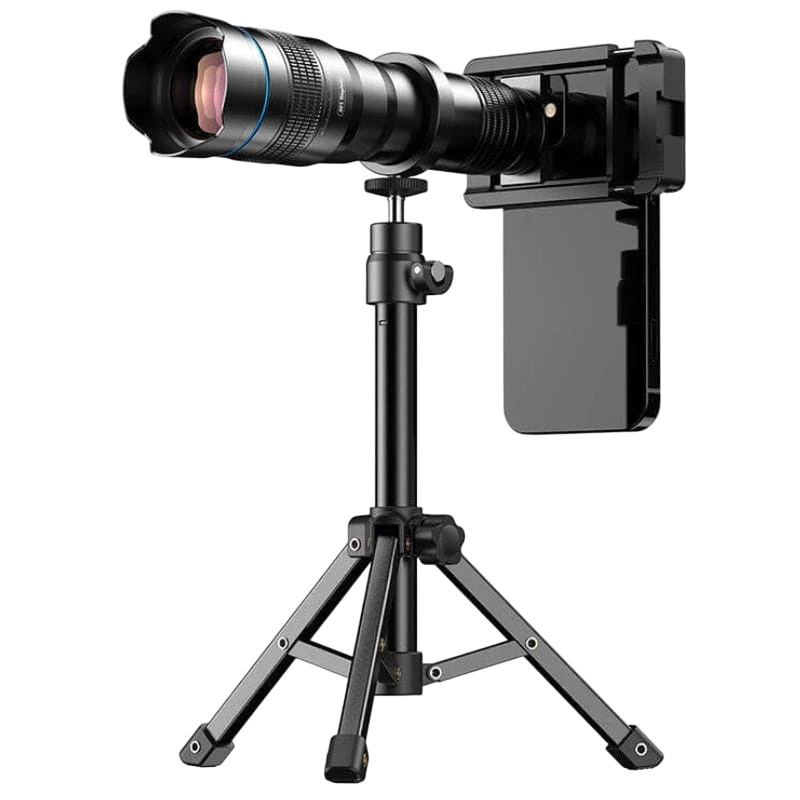 Permite fotografiar objetos a grandes distancias con el teléfono, gracias a su aumento de 36x, obteniendo perspectivas diferentes a partir de una misma posición de captura. Su ligero peso, acompañado de un trípode robusto ajustable, otorgan la estabilidad necesaria para tomar fotos de calidad, ideal para paisajes, estadios, conciertos y todo lo que cuente con limitado acceso. Incluye un anillo de enfoque y un soporte universal compatible con la mayoría de teléfonos del mercado.