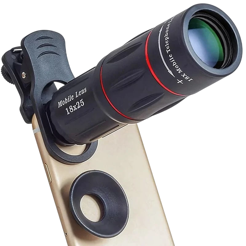Permite fotografiar objetos a grandes distancias desde el teléfono gracias a su aumento 18x, obteniendo perspectivas diferentes a partir de una misma posición de captura. Su ligero peso, acompañado de una funda de transporte y trípode facilitan su transporte.
