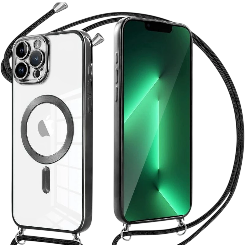 Funda Colgante Magnético Transparente iPhone 13 Negro - Compatible con Magsafe