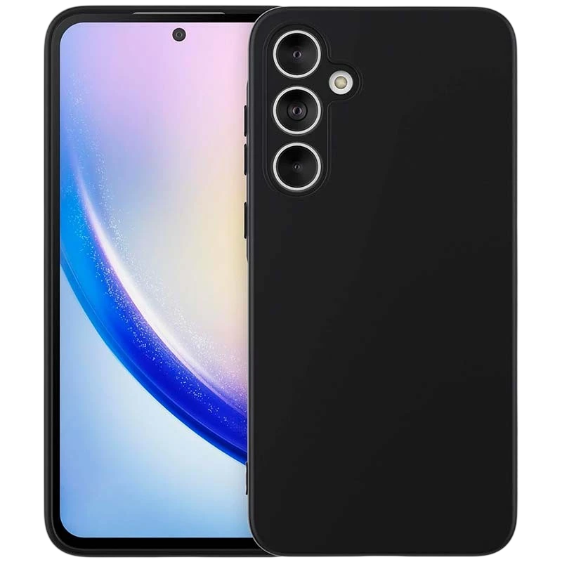 Encaja perfectamente en el Samsung Galaxy A56 5g, queda ajustada y no se suelta. Los bordes de la funda cubren perfectamente los laterales del teléfono sin dejar ver el color de los mismos laterales. Al ser de goma no patina en las manos y se maneja con facilidad. En mi caso le he añadido una correa para sujetarlo con mas seguridad y es perfecta. Es lisa, sin ningun relieve o dibujo. Buena compra. - Negro