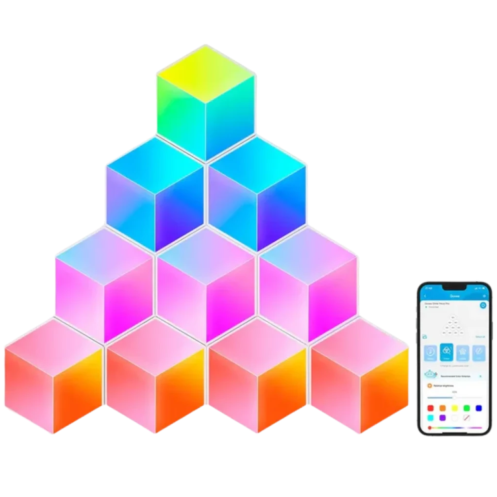 Con 129 LED RGBIC por panel y un innovador relieve interno que proyecta efectos 3D, estos paneles modulares ofrecen una luz multicolor fluida y de alta densidad nada habitual en su rango. El pack incluye diez unidades que pueden ampliarse hasta 25 con el mismo adaptador, combinando control Wi-Fi 2,4 GHz + Bluetooth y sincronización musical para transformar por completo la estética de una pared.