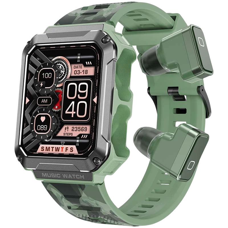 Un reloj inteligente con auriculares inalámbricos que brinda calidad perfecta de sonido, este diseño tiene integrado una potente señal de Bluetooth 5.0 con alcance y señal en áreas abiertas hasta los 25 m. Además de un sonido HIFI 9D y un emparejamiento automático al reloj, que permite usarlo sin restricciones y con excelente conectividad y señal.
