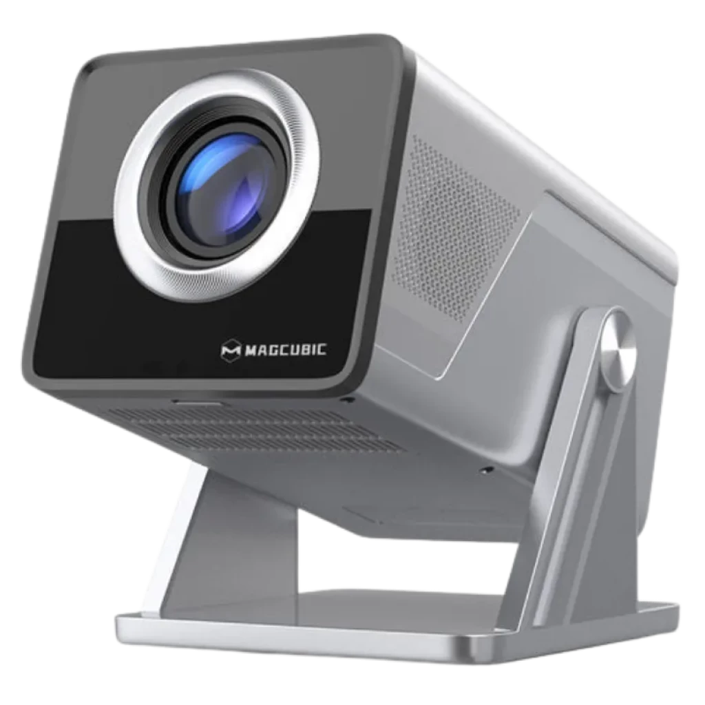 El diseño del chasis integra un soporte rotativo de 180 grados, facilitando la proyección en techos sin necesidad de trípodes. La configuración de imagen es automática: el dispositivo cuenta con enfoque motorizado y corrección trapezoidal (Keystone) asistida por sensores para ajustar la geometría de la pantalla en segundos. Para prolongar la vida útil del panel LCD, se ha incluido un filtro de aire desmontable y un puerto de acceso que facilita la limpieza de partículas de polvo internas.