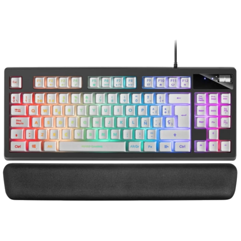 Pulsación rápida - Tecnología H-Mech - Luces LED RGB - Botón Roller con control de volumen - Formato TKL - Reposamuñecas Premium - Compatiblidad multiplataforma