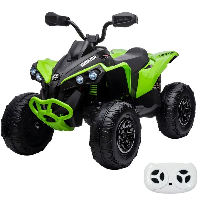 El Can-Am Renegade es un quad eléctrico de gran tamaño diseñado para niños. Posee una batería de 24 voltios y tracción en las cuatro ruedas, además de cuatro motores para una mayor potencia y está equipado con características especiales para imitar un quad de carreras, como las ruedas de goma anti-pinchazos, un asiento acolchado de polipiel y más. Está en color verde.