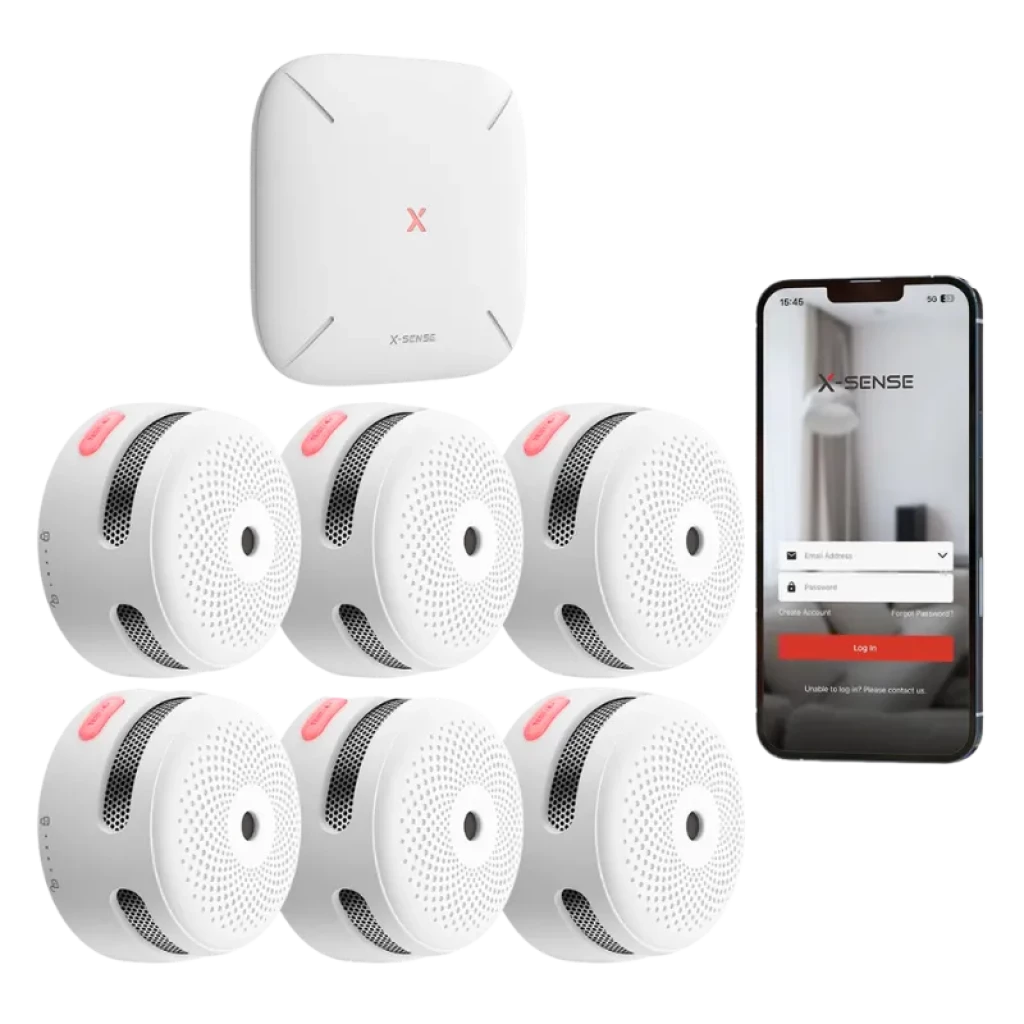 Concebido para proteger viviendas u oficinas completas sin cableado, el kit X-Sense FS61 agrupa seis detectores fotoeléctricos XS01-M y un hub Wi-Fi SBS50 que los enlaza y notifica al móvil. Cada unidad vigila entre 20 y 40 m² y, al detectar humo, activa simultáneamente todas las sirenas de 85 dB, asegurando una alerta homogénea en segundos. Además, cumple la norma EN 14604, garantía de fiabilidad y seguridad.