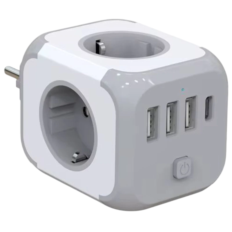Permet d'étendre les connexions à l'intérieur de la maison, offrant jusqu'à 7 prises. Elles se divisent en : 3 prises type F, 3 ports USB-A et 1 port USB-C, offrant plus de polyvalence de connexion et favorisant l'économie d'espace grâce à son design compact. Inclut un bouton pratique pour activer et désactiver les appareils.