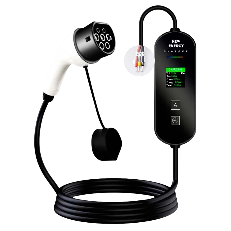 Chargeur EV - Compatible avec les véhicules BEV et PHEV - Écran LCD couleur - Indicateur LED - Courant maximal de 32 A - 3.5 kW - Options de programmation - 8 couches de protection - Étanche à la poussière et à l'eau IP67 - Résistant aux températures entre -40~80℃