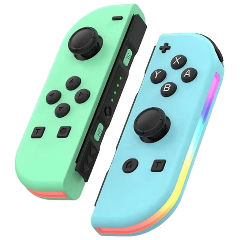Compatible avec tous les modèles de Nintendo Switch - Double moteur de vibration - Gyroscope 6 axes - Batterie 500 mAh - Autonomie jusqu'à 15 heures - Vert/Bleu avec RVB