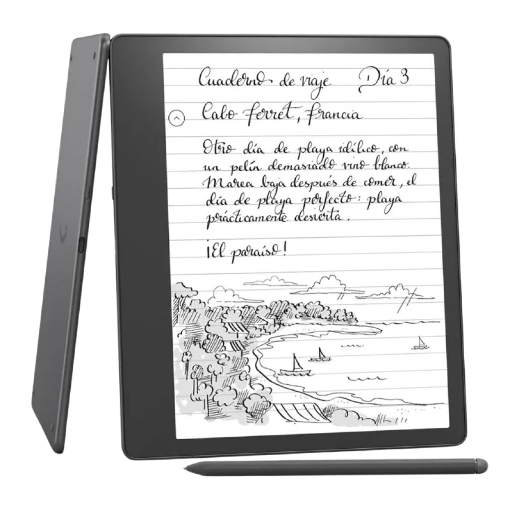 Son écran E-Ink Carta de 10,2 pouces restitue le texte avec la densité classique des Kindle (300 ppp) et offre suffisamment d’espace pour annoter les marges, travailler sur des documents A4 ou consulter des partitions. Le rafraîchissement optimisé évite les effets de traînée lors du défilement des pages ou des blocs-notes.