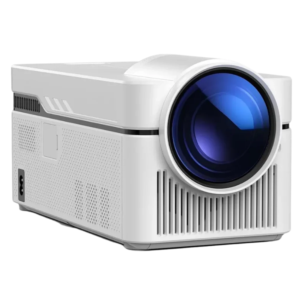 La connectivité sans fil repose sur le Wi-Fi double bande et le Bluetooth 5.2 pour la connexion de systèmes audio externes sans latence. Le châssis comprend des ports HDMI, USB pour le stockage local, une entrée AV et une sortie audio jack 3,5 mm. Le son intégré repose sur un système stéréo de deux haut-parleurs de 5W. Avec un poids de 1,20 kg, l’appareil permet une installation inversée au plafond ou sur supports.