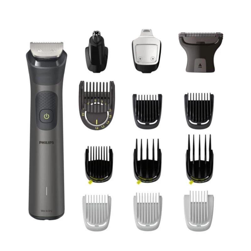 Tout-en-un - 14 outils - 26 positions - Lames auto-affûtantes - Technologie BeardSense - Sans fil - 120 minutes d'autonomie - Charge rapide - Imperméable - Étui de voyage - Nettoyage facile - Couleur Gris