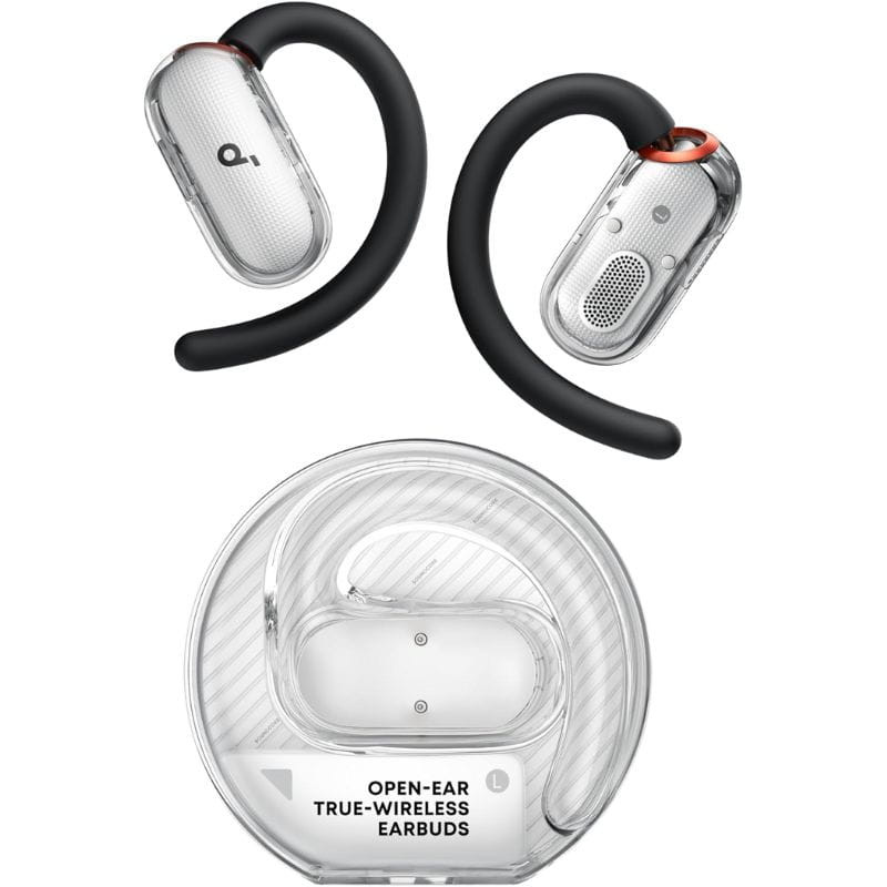 Les crochets flexibles couvrent plus de 99 % des morphologies auriculaires ; en rapprochant le haut-parleur, ils améliorent la réponse dans les basses et réduisent les fuites sonores. L’étui transparent sans couvercle utilise des aimants à forte rétention permettant d’extraire les écouteurs d’un simple geste.