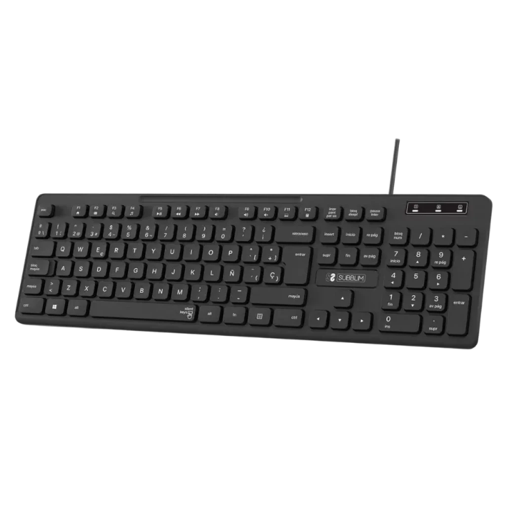 Face à des références économiques comme le Logitech K120 ou le Microsoft Wired 600, le Subblim Business Slim se distingue par sa véritable réduction du bruit et un profil plus bas qui favorise l’ergonomie. Il ne dispose pas de rétroéclairage — une absence compréhensible dans cette gamme — mais compense par sa résistance aux liquides, sa légèreté et un câble généreux, des qualités qui renforcent un rapport qualité-performance remarquable pour les bureaux qui privilégient le silence et le confort durable.