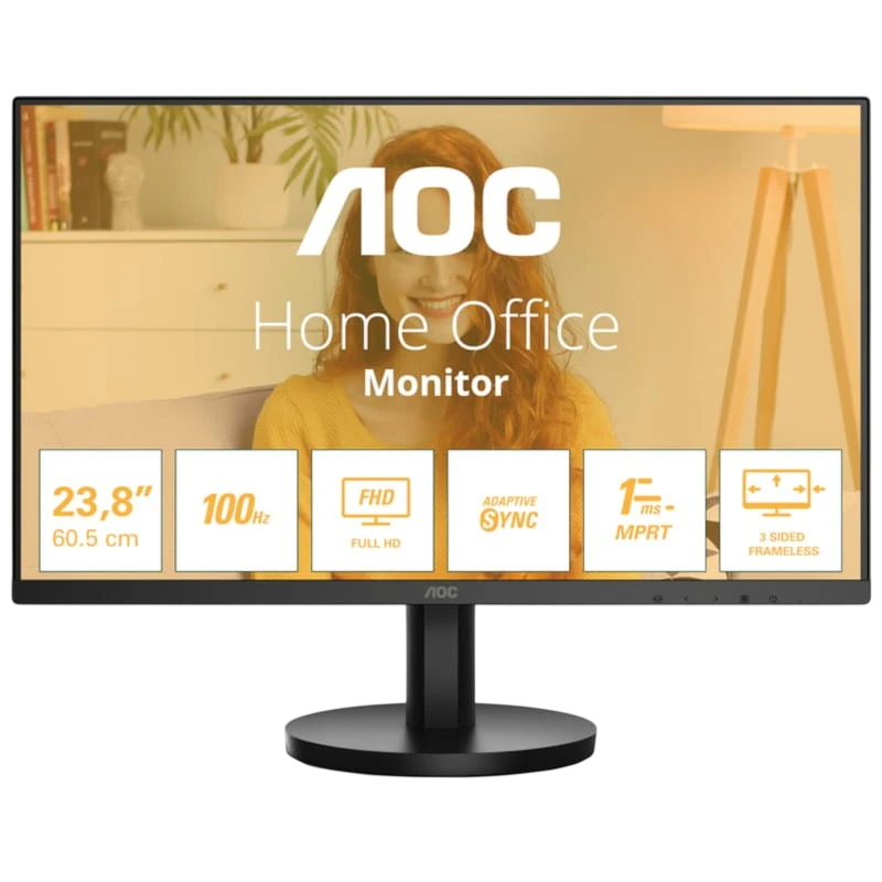 O AOC 24B3HMA2 é um monitor com 23,8 polegadas e resolução Full HD, que apresenta um design sem moldura para maximizar a área visual. Além disso, possui 100Hz de frequência e inclui portas HDMI e VGA.