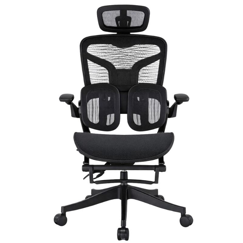 Cadeira de escritório ergonómica Elea em malha preta com apoio lombar e apoio para a cabeça