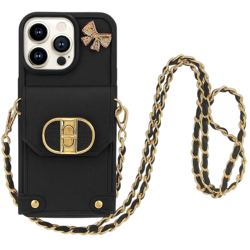 Capa Carteira Correntes Pendentes Coquette iPhone 16 Pro Max, Preto