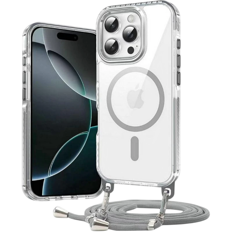 Capa Magnética com Corrente Removível para iPhone 16 Pro Prata