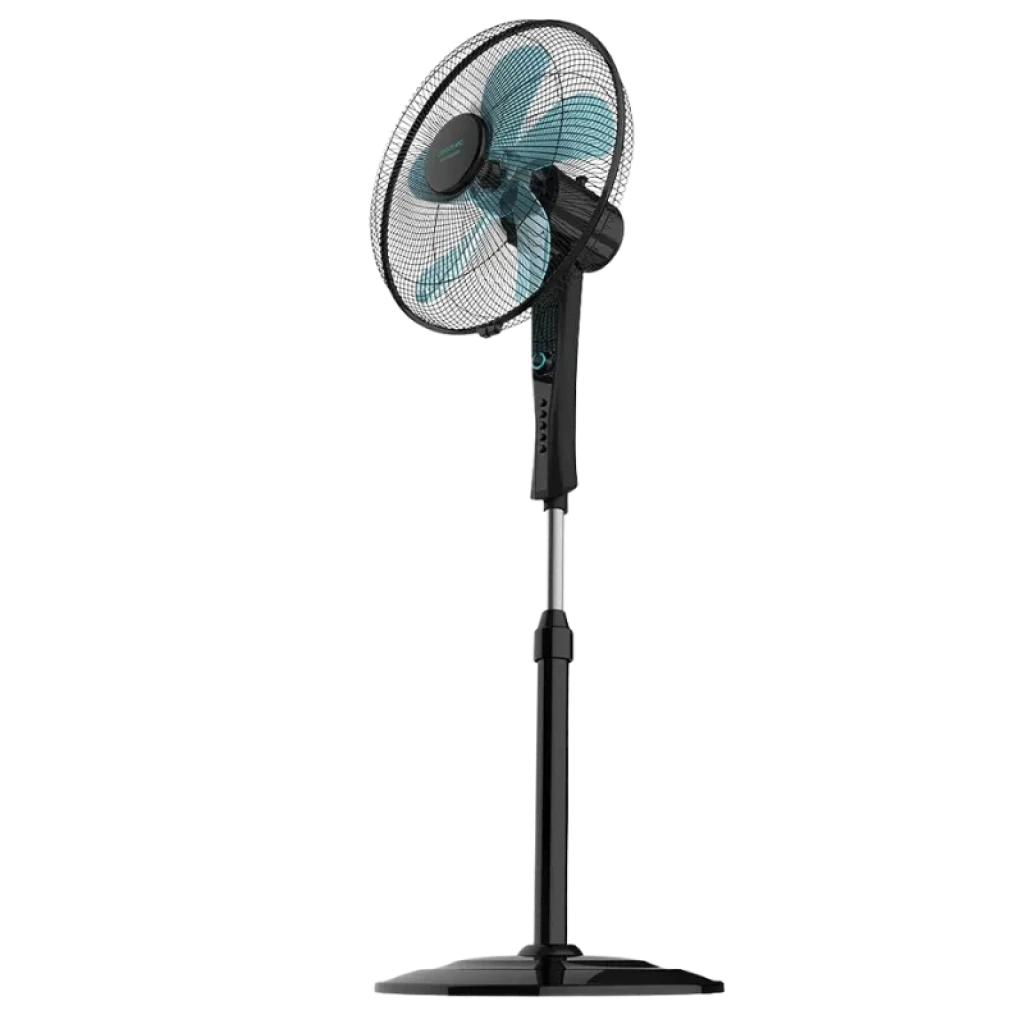 A estrutura é regulável em altura através de uma barra telescópica, permitindo um ajuste entre os 110 cm e os 130 cm. Além disso, a cabeça permite ajustar a inclinação vertical para orientar o ar com precisão. A montagem da unidade é intuitiva e realiza-se manualmente, sem necessidade de ferramentas externas.