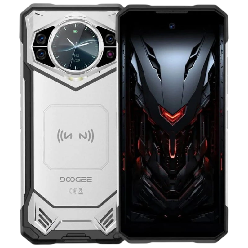 Smartphone rugged - Design Mecha - Certificações IP68, IP69K e MIL-STD-810H - Câmara traseira de 100+20+2 MP - Câmara frontal de 20 MP - Ecrã de 6,72'' 2.4K - Processador MediaTek Dimensity 7050 Octa Core - 12 GB RAM - 256 GB ROM - Conectividade 5G - WiFi 6 - Bateria de 10100 mAh - Android 14 - Leitor de impressão digital - NFC