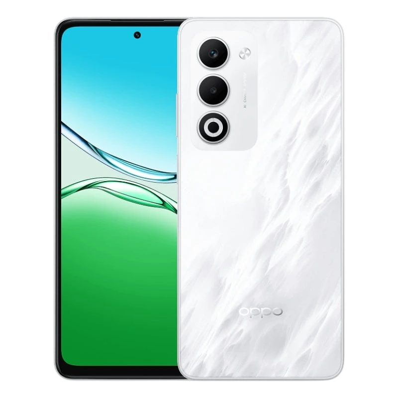 Com 7,99 mm e 193 g, o Oppo A5 4G é fácil de manusear, apesar da bateria grande. O chassis de policarbonato reforçado supera os testes SGS Gold e está disponível em Mist White, Aurora Green e Midnight Purple.