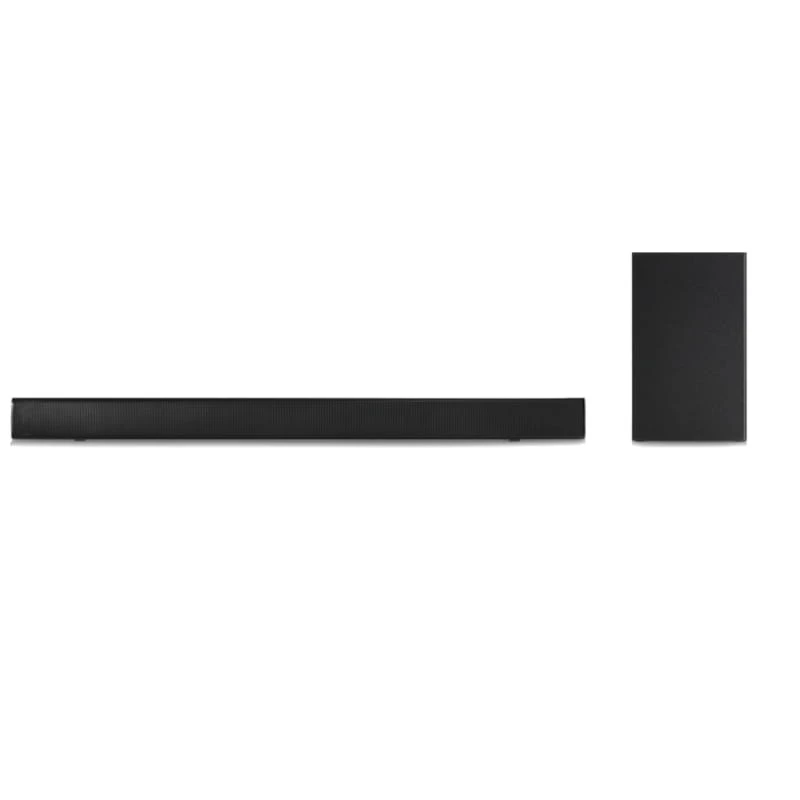 Canais de saída de áudio 2.1 canais - Potência estimada de 100 W - Potência da barra de som RMS: 45 W - Conectividade da coluna de graves - Potência RMS do subwoofer de 55 W - Sem fio - Com fio - Preto