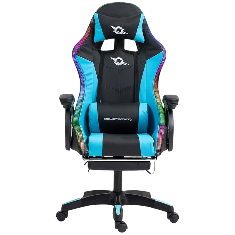 Descubra a PowerGaming LED RGB, uma cadeira gaming com design confortável e acolchoado viscoelástico, que inclui ainda um apoio para pés e duas almofadas: uma lombar e outra cervical. Se ainda não for suficientemente confortável, ajuste-a às suas preferências de altura e inclinação do encosto (até 155º). A sua facilidade para se adaptar a qualquer espaço é garantida pelo design compacto e leve, bem como pelas cinco rodas de nylon, que proporcionam um deslocamento simples e seguro para o seu pavimento. Tudo isto apresentado através de um atrativo estilo desportivo com revestimento de couro sintético de cor Preto+Azul muito fácil de limpar e com luzes LED RGB integradas.
