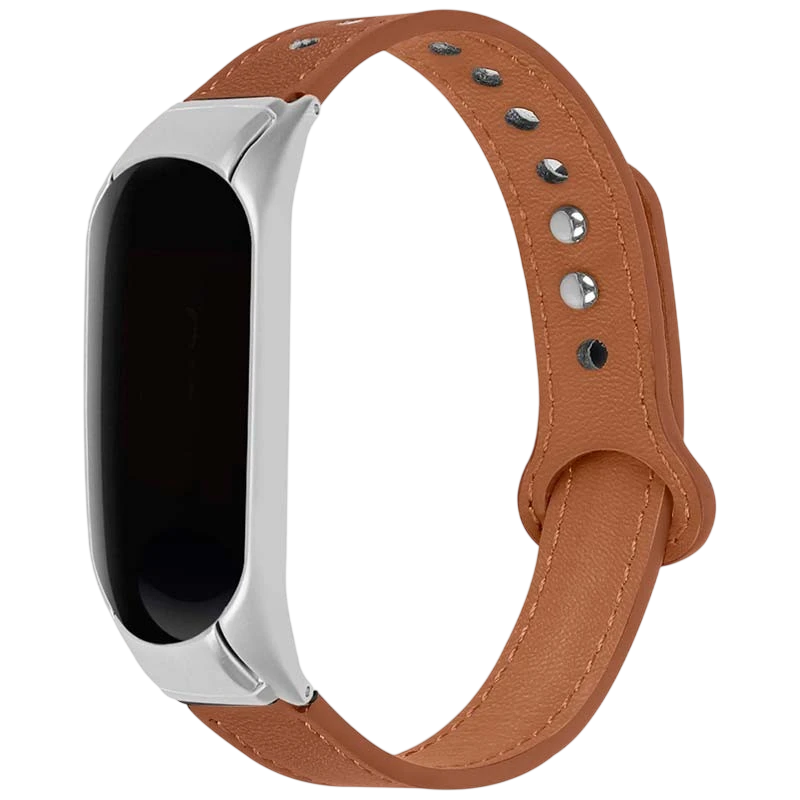 Pulseira de substituição - Couro sintético - Fecho de clipe - Para Xiaomi Mi Smart Band 6 / Mi Band 5 / Amazfit Band 5 - Castanho