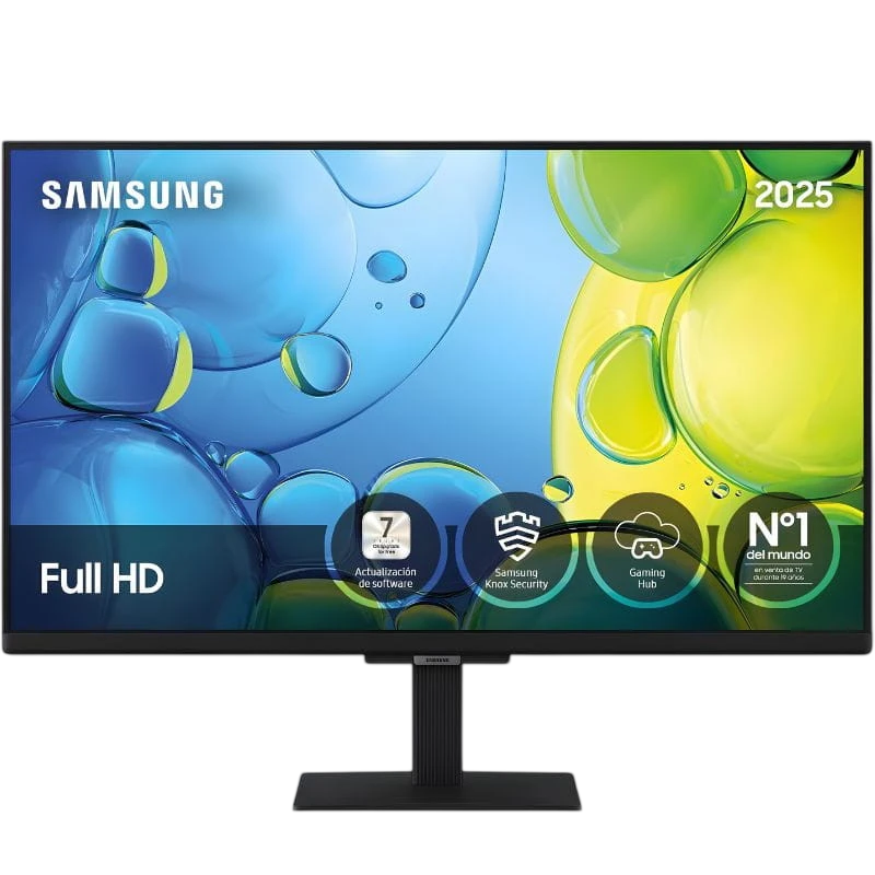 Incorpora 2 HDMI eARC, USB, Ethernet, Wi-Fi 5 e Bluetooth; admite VESA 100 × 100 e pesa apenas 3 kg com suporte, pelo que cabe em secretária, cozinha ou caravana.