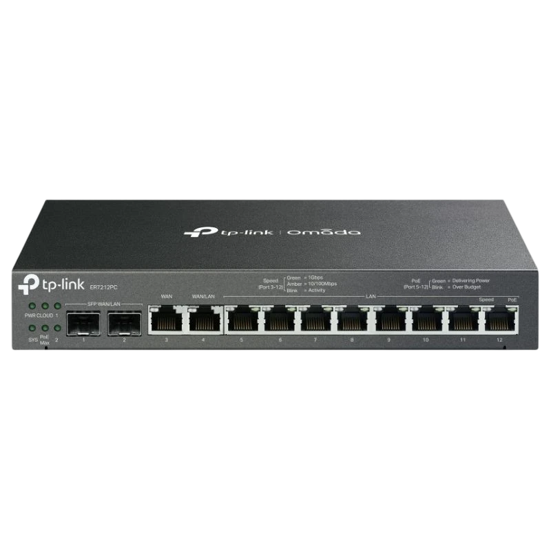 O ER7212PC é um router VPN que integra 8 portas PoE+ e capacidade de gestão centralizada. Ligue facilmente pontos de acesso Omada e dispositivos compatíveis com PoE. Inclui ainda 12× portas Gigabit para uma rede de alta velocidade e 4× portas WAN Ethernet para uma rede estável.
