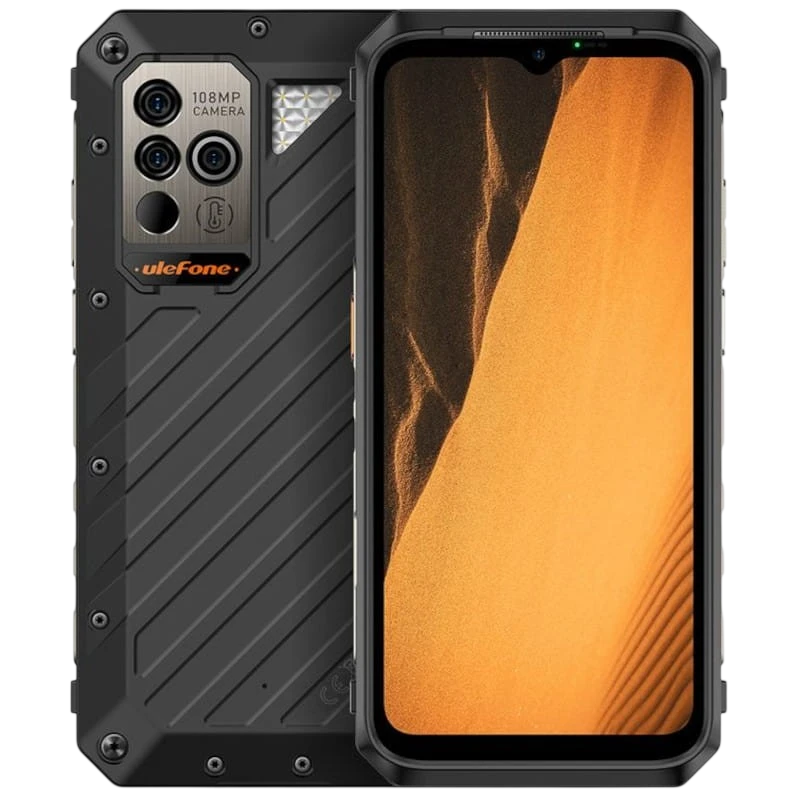 Tripla certificação de resistência - Termómetro - Processador MediaTek Helio G99 - 12GB de RAM - 256GB de capacidade - Ecrã de 6,58" - Resolução FullHD+ - Taxa de atualização de 120 Hz - Tripla câmera traseira de 108 MPx - Câmera frontal de 16 MPx - Enorme bateria de 9600 mAh - Carregamento rápido de 66W - Android 12 - Preto