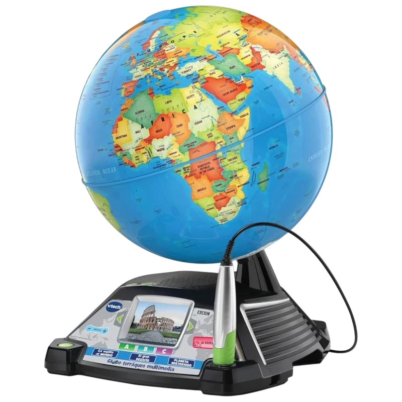 Vtech Globo interativo multimédia, globo terrestre para crianças a partir dos 7 anos de idade. Permite explorar livremente o mundo, fornecendo informações sobre a cultura, a geografia e a história de diferentes locais, ajudando os mais jovens a conhecer melhor o mundo em que vivem. Para isso, conta com um lápis tátil que permite marcar diferentes lugares. Tudo isso com um ecrã de 2.7" com resolução HD.