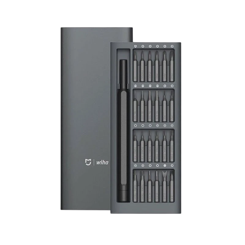 Uma chave de fenda da Xiaomi apenas para os seus melhores fãs, não perca a sua, terá 24 bits diferentes para todos o tipo de uso. Vem com uma caixa de alumínio para manter as bits organizadas, a chave de fenda é feita de alumínio com tratamento antioxidante e as bits em aço tipo S2 e atinge uma dureza de 60 HRC para que sejam duráveis e resistentes ao longo do tempo, como a chave de fenda, as bits têm um tratamento antioxidante para assegurar a sua perfeita preservação.